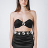COMPOSIZIONE: Tessuto principale: 100% PE. Fodera: 80% AC - 20% SE. Applicazione: cristalli in vetro - ottone.