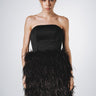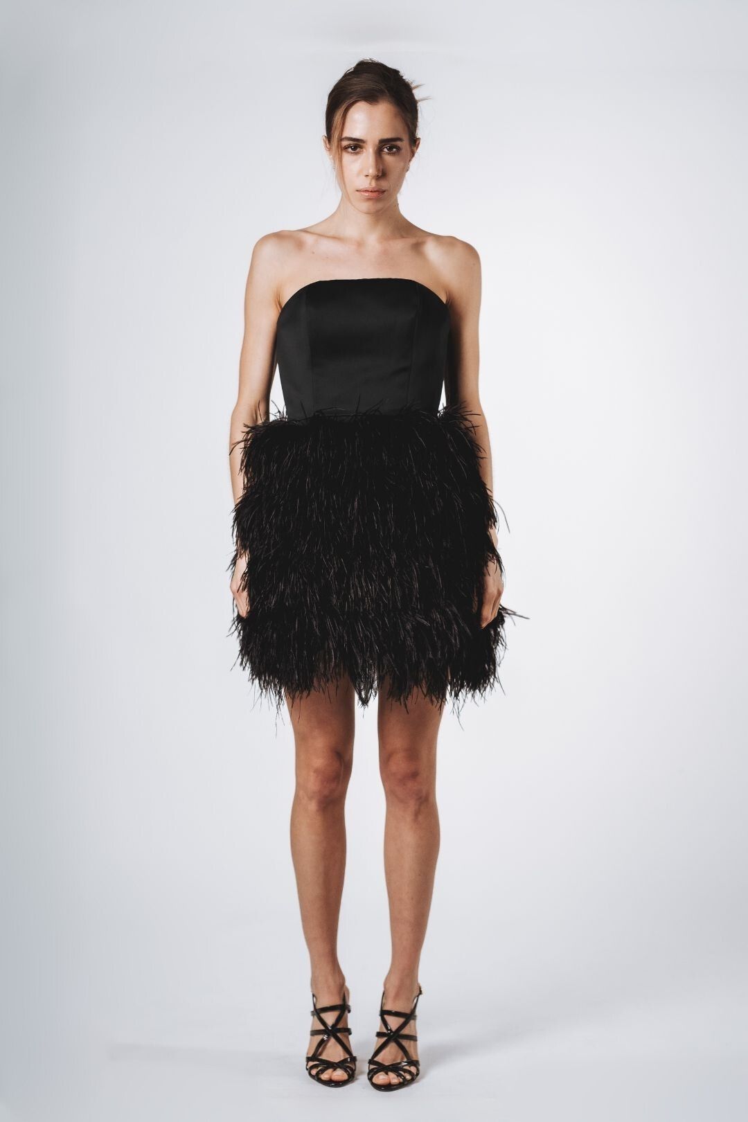 COMPOSIZIONE: Tessuto principale: 100% PE. Fodera: 80% AC - 20% SE. Applicazione: 100% piume di struzzo.
