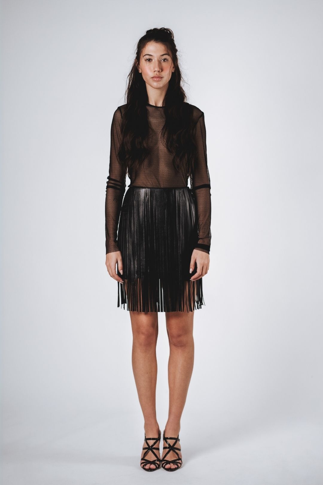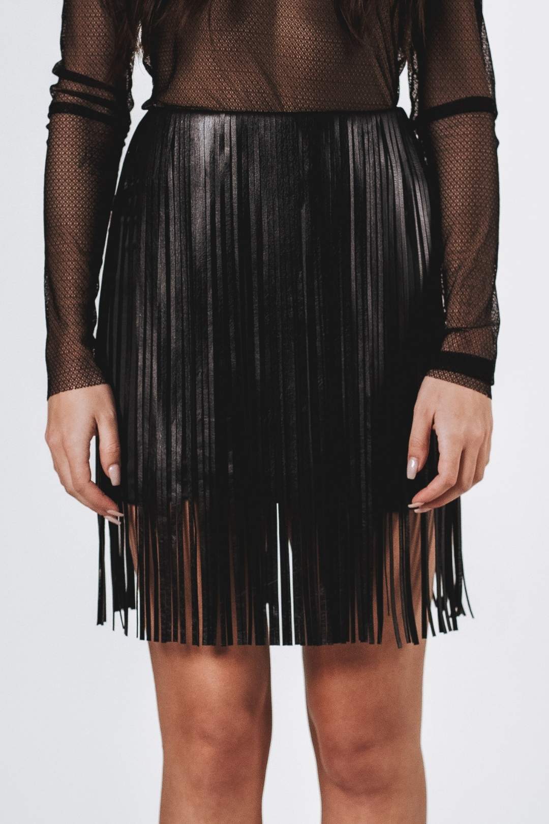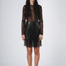 Minigonna in duchesse con frange in vera pelle.